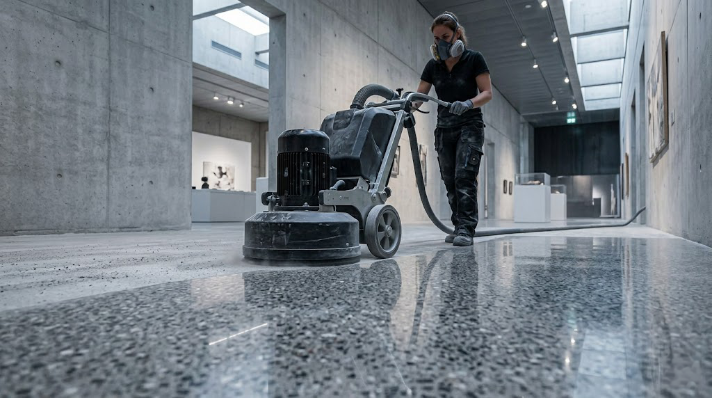 Hali hazırdaki zemininler, beton parlatma makineleri ve aşındırıcı elmaslar yardımıyla silinir, zayıf tabaka kazınır ve daha güçlü yüzeye kavuşarak parlatma işlemi yapılmaktadır. Beton zemin parlaklığı, çok farklı kademelrde elmaslar kullanarak istenilen oranda parlatılması mümkündür.